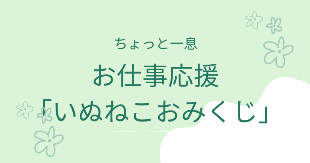 今日のパートナーを呼んでいます... 運勢を占おう いつもお疲れ様です🌿 ボタンを押すと、ワンちゃん猫ちゃんが癒やしのメッセージを運びます ☘ Lucky Item: おみくじを引く お仕事応援おみくじ|疲れた脳を癒やす、今日のわんニャンお告げ ... -