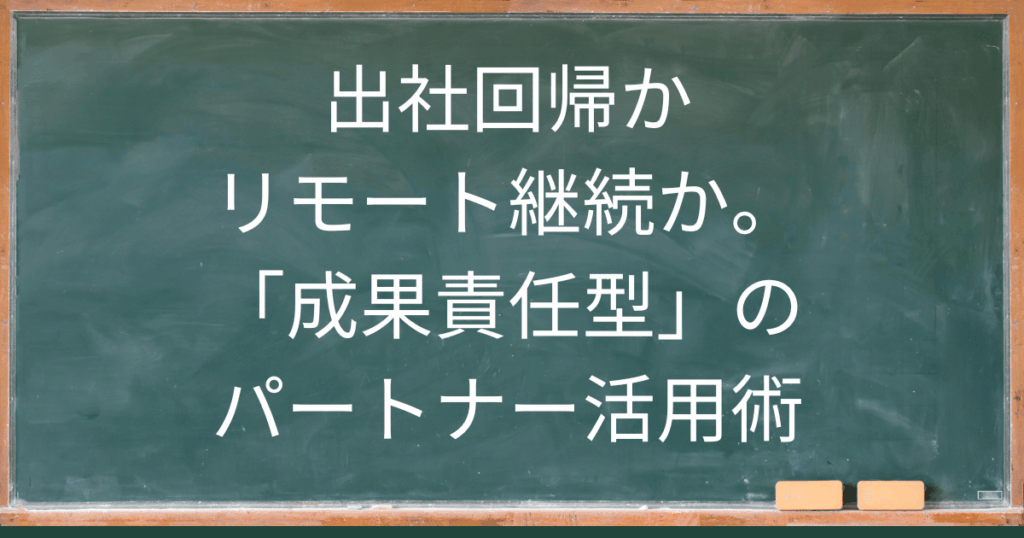 出社回帰かリモート継続か。経営を停滞させない「成果責任型」のパートナー活用術