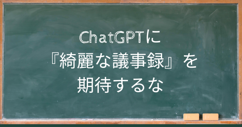 「AIを使えば、ボタン一つで完璧な議事録ができる」 「これからはプロンプトエンジニアリングの時代だ」 そんなキラキラした言葉を信じてChatGPTに手を出したものの、結局、出力された「それっぽいだけの文章」を直すのに1時間以上かかっていないでしょ... -