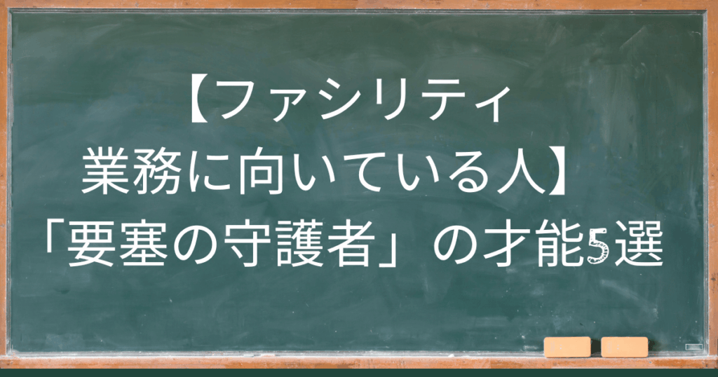 【ファシリティ業務に向いている人】電球交換係?とんでもない。オフィスという巨大な生き物を手懐け、社員の命と生産性を守る「要塞の守護者」の才能5選