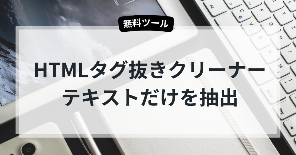 HTMLタグを一括で削除!テキストだけを抽出できる無料ツール 「HTMLタグ抜きクリーナー」は、コピーしてきたHTMLコードやタグ付きの文章から、すべてのHTMLタグを一括で削除し、テキストだけを抽出・コピーできる無料のWebツールです。 たとえば、CMSやメ... -
